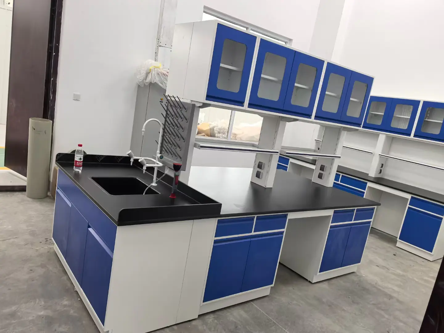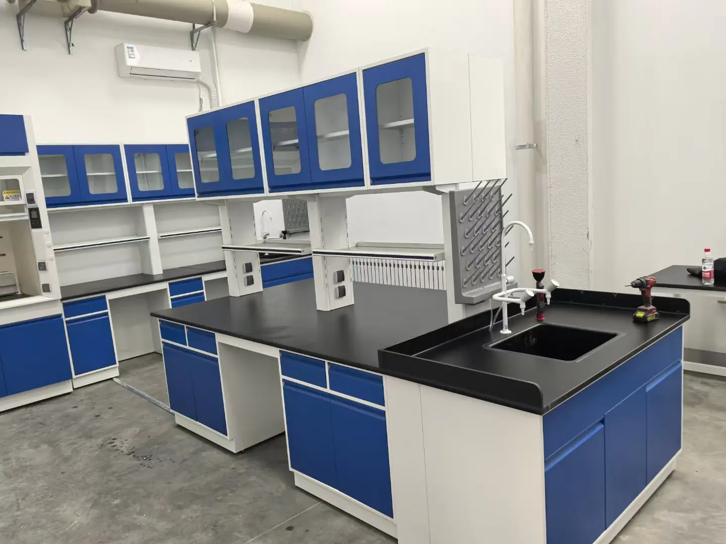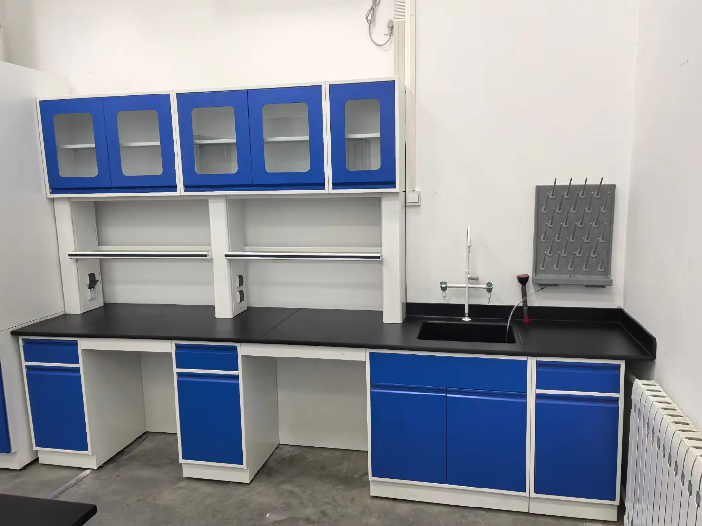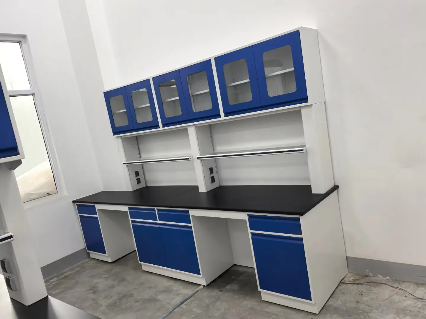 All steel blue cabinet door, with wall cabinet and reagent rack